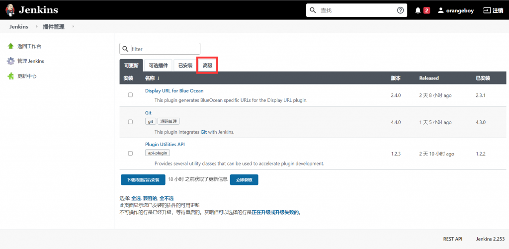 #创建网络 docker network create jenkins #创建容器卷 docker volume create jenkins-docker-certs docker volume create jenkins-data #让Jenkins跑起来 docker run -u root --rm -d -p 8080:8080 -p 50000:50000 -v jenkins-data:/var/jenkins_home -v /var/run/docker.sock:/var/run/docker.sock jenkinsci/blueocean