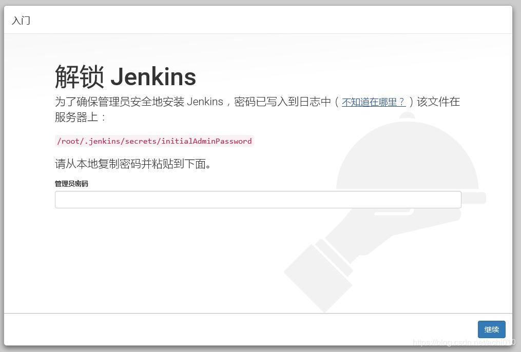 进入Jenkins的docker容器,找到密码,复制到上面即可。